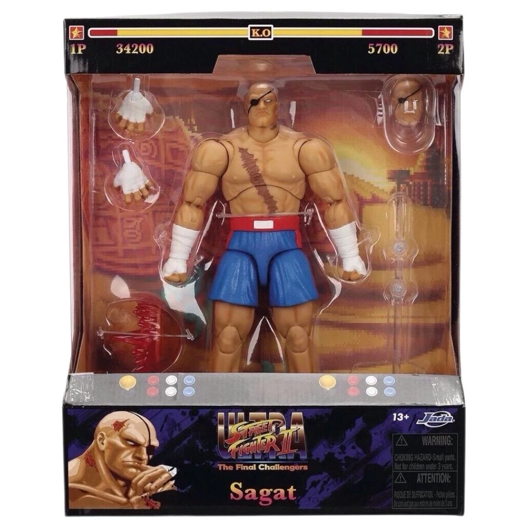 Prepárate para el enfrentamiento definitivo en un mundo donde las peleas callejeras son el evento principal. Sumérgete en el mundo de la nostalgia y la acción con tus personajes favoritos del videojuego Street Fighter II, ahora como figuras de acción a escala 1:12 de Jada Toys.